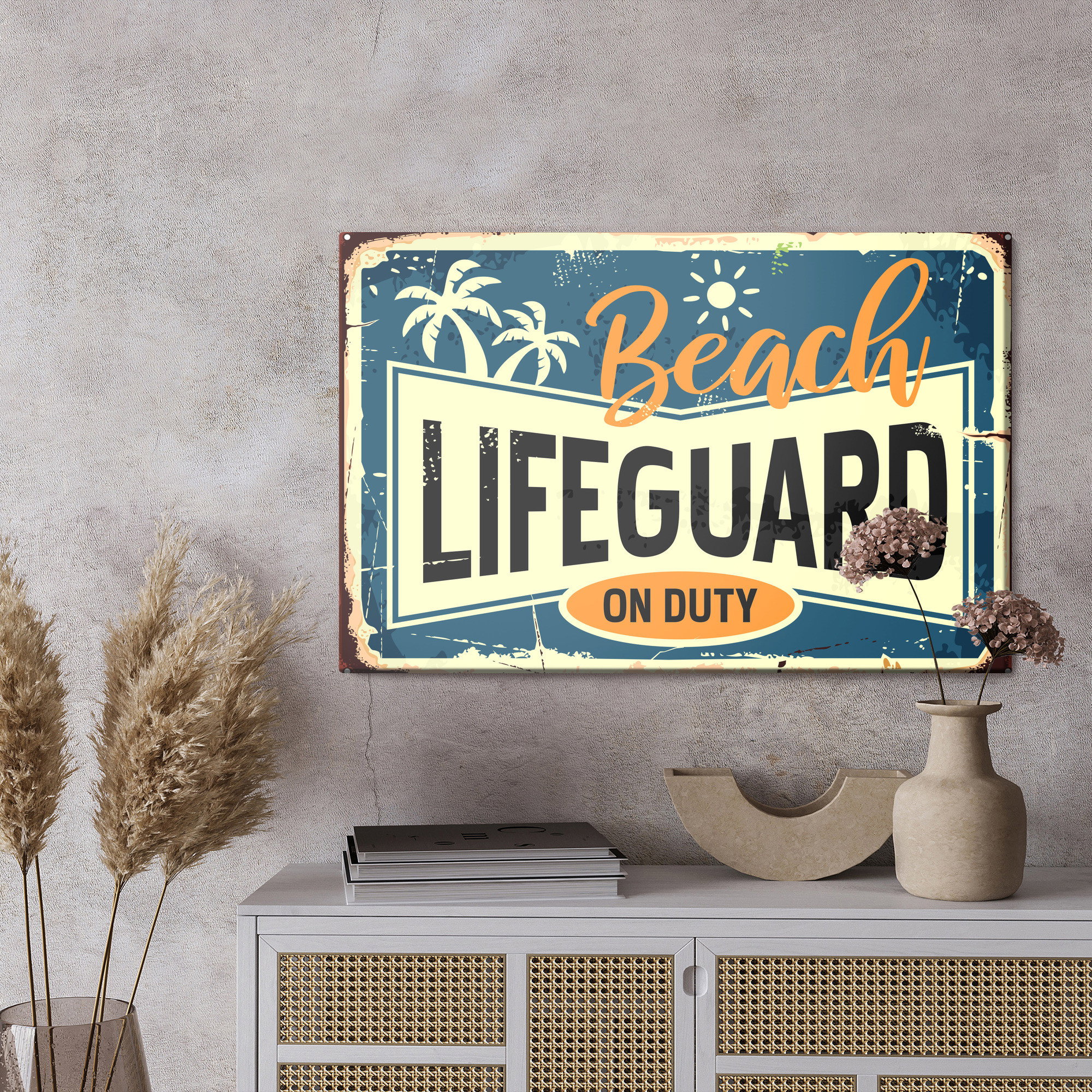 Het motief Beach typography in vintage wordt met hoge kleurnauwkeurigheid en veel detail weergegeven dankzij HP Latex-technologie. De afdruk wordt gemaakt met watergedragen, geurloze en GREENGUARD Gold-gecertificeerde inkt die een resolutie tot 300 DPI biedt. De kleuren zijn UV-bestendig en behouden hun intensiteit, zelfs in lichte ruimtes, waardoor het schilderij geschikt is voor zowel thuis als in openbare omgevingen.