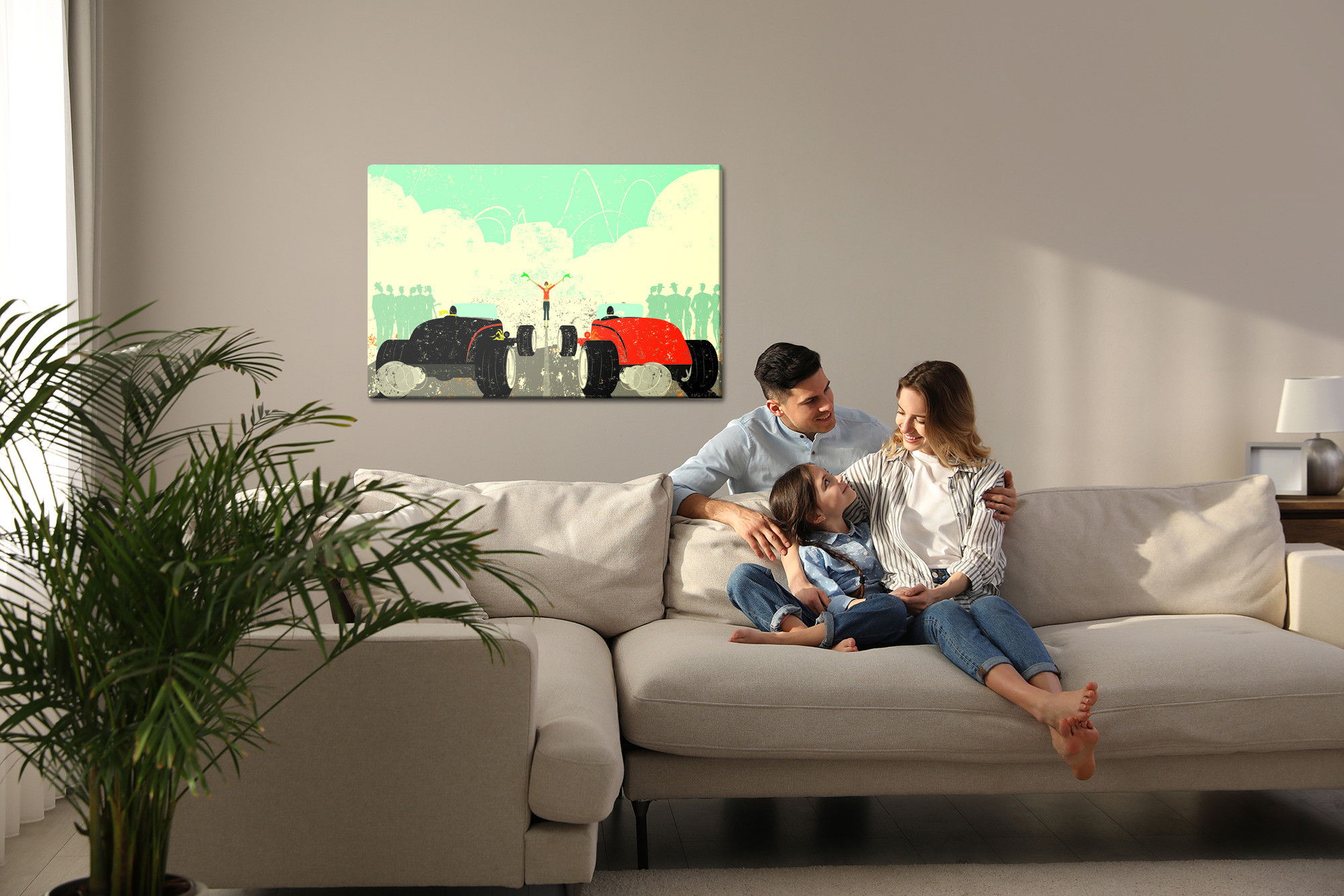 Ljuddämpande tavla – A retro car race för lugnare rum och mjukare akustik