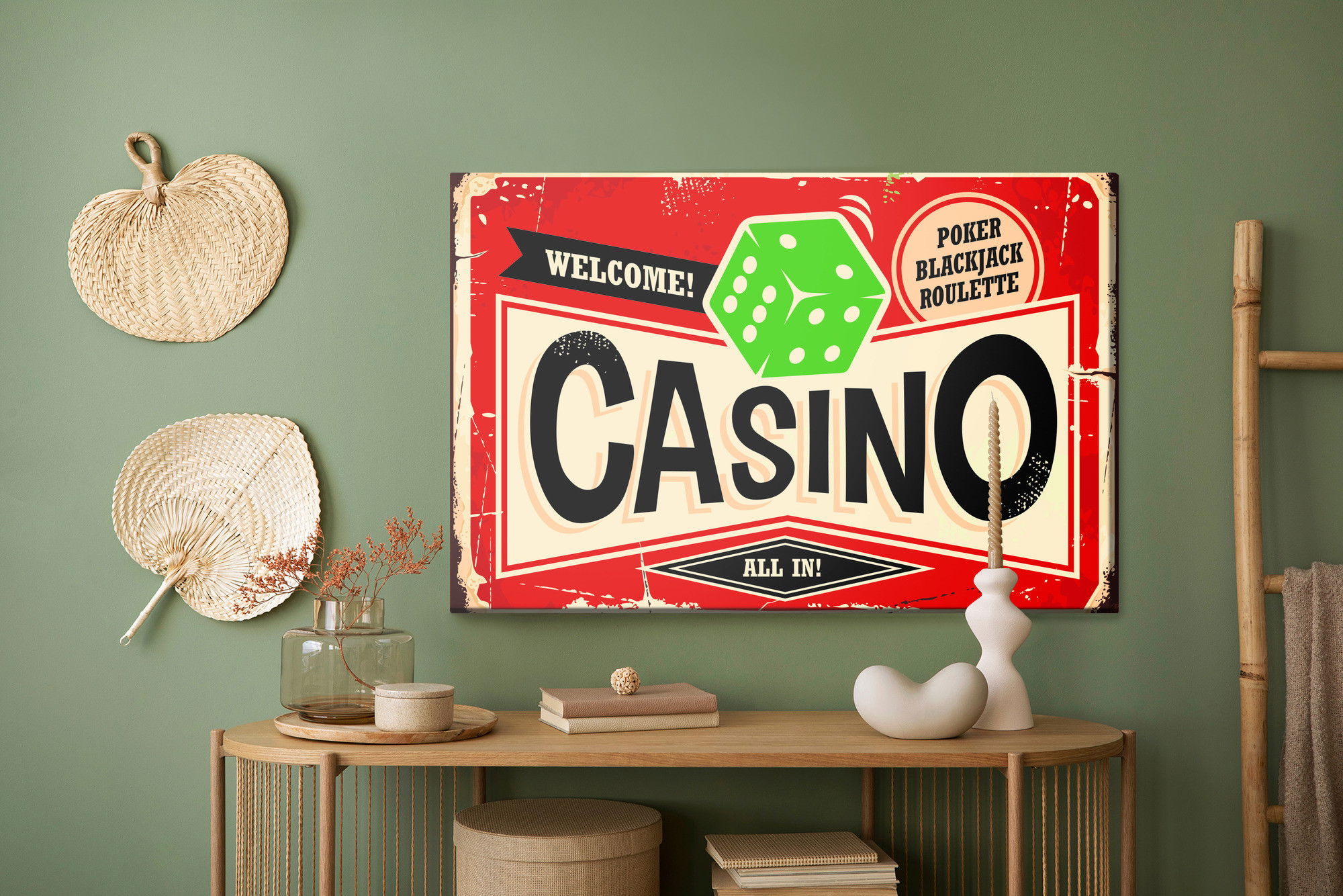 SilentDirects ljuddämpande tavla Casino style reto chalkboard kombinerar ett högupplöst motiv med avancerad akustikteknik. Varje tavla monteras i Sverige och bygger på en stabil canvastavla med fururam, där insidan av ramen fylls med en ljudabsorberande kärna av återvunnen polyester. Konstruktionen gör tavlan till ett både estetiskt och funktionellt inslag i rummet.