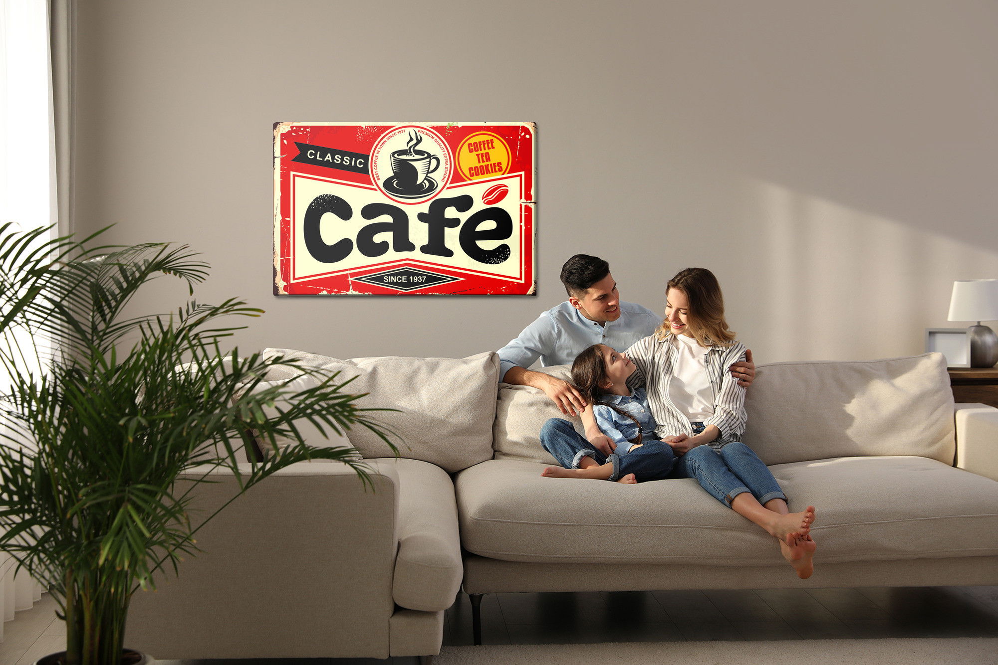 Varje tavla monteras på en massiv fururam. Format upp till 70×50 cm har en ram på 15 mm, medan format från 90×60 cm och uppåt har en ram på 20 mm. Den exakta dukspänningen gör att tavlan håller sin form över tid. Motivet Coffee cup and retro trycks runt hela ramen vilket ger ett stilrent galleriuttryck där tavlan är lika vacker från sidan som framifrån. Kombinationen av rak dukspänning, rena linjer och korrekt tryck ger en professionell finish.