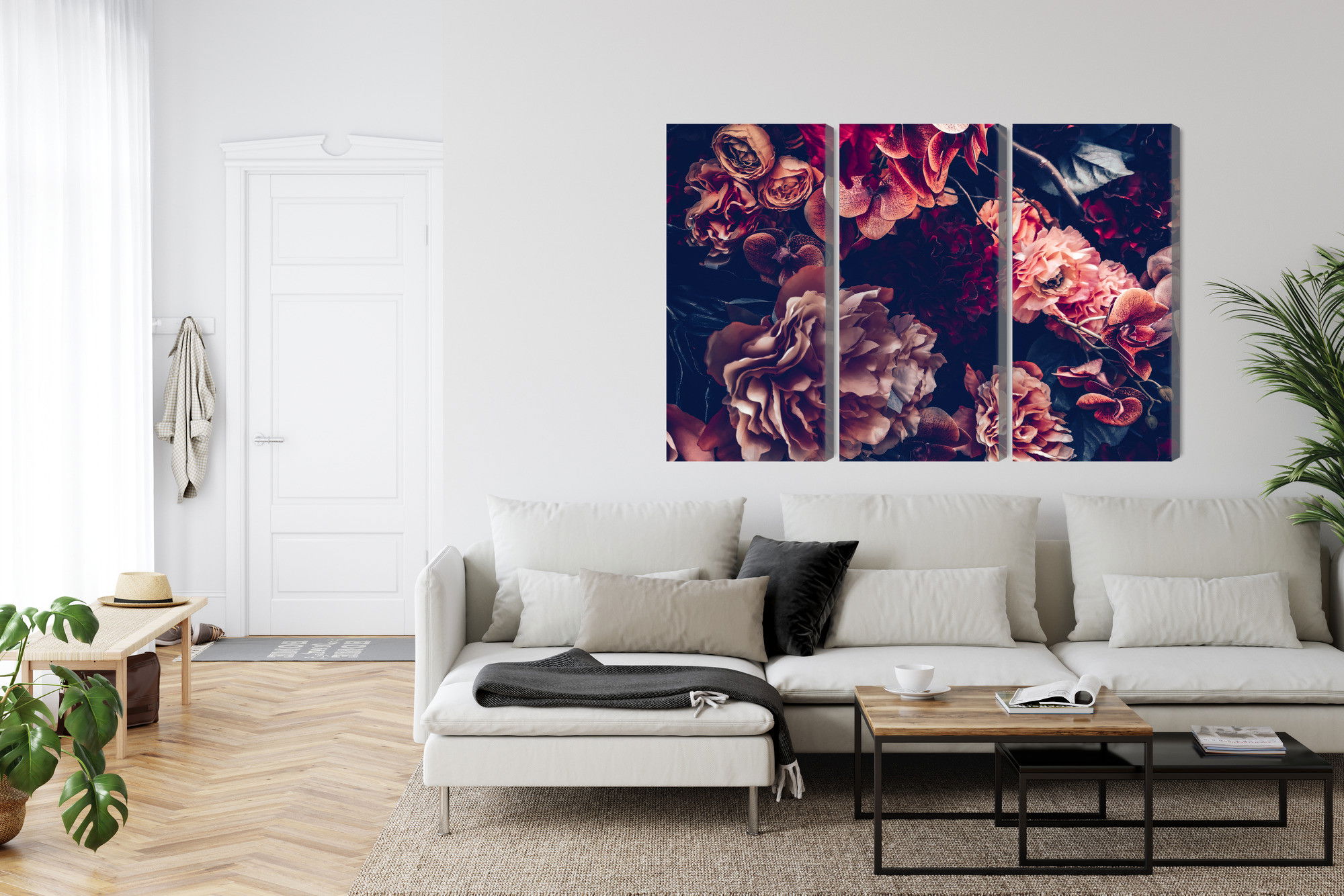Varje tavla monteras på en massiv fururam. Format upp till 70×50 cm har en ram på 15 mm, medan format från 90×60 cm och uppåt har en ram på 20 mm. Den exakta dukspänningen gör att tavlan håller sin form över tid. Motivet Colorful flowers in a retro trycks runt hela ramen vilket ger ett stilrent galleriuttryck där tavlan är lika vacker från sidan som framifrån. Kombinationen av rak dukspänning, rena linjer och korrekt tryck ger en professionell finish.