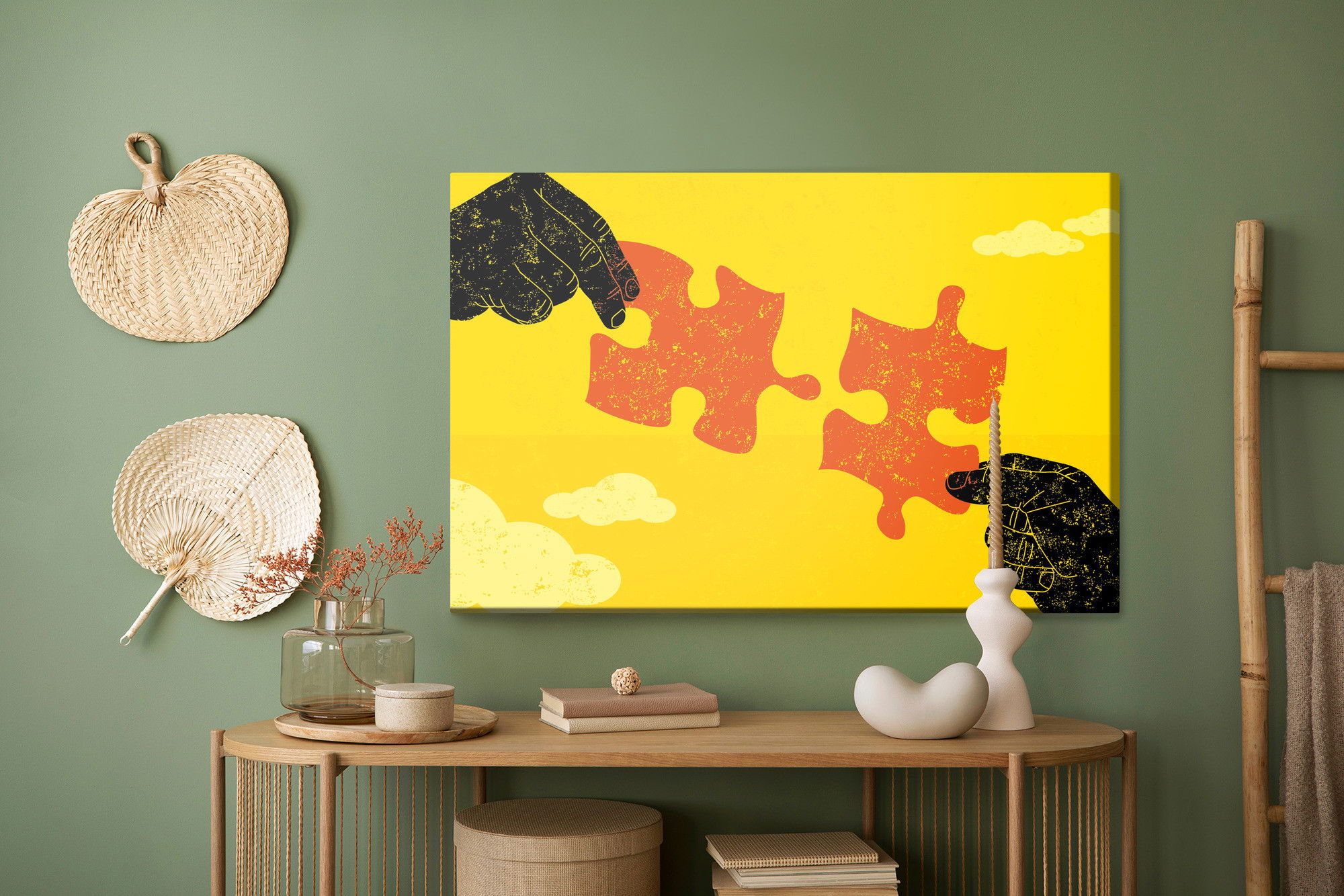 Ljuddämpande tavla – Connecting vintage puzzle för lugnare rum och mjukare akustik
