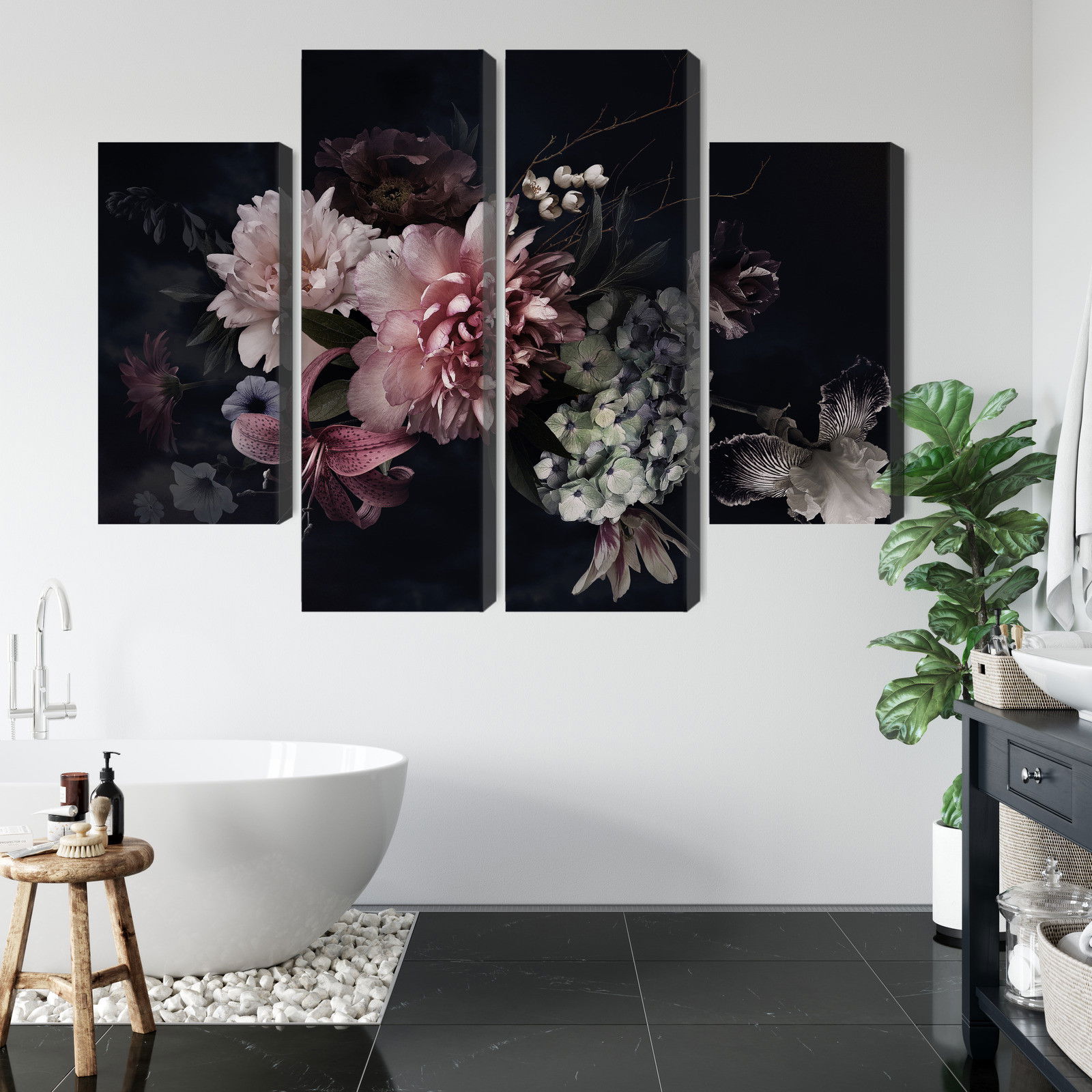 Ljuddämpande tavla – Flowers in vintage style för lugnare rum och mjukare akustik