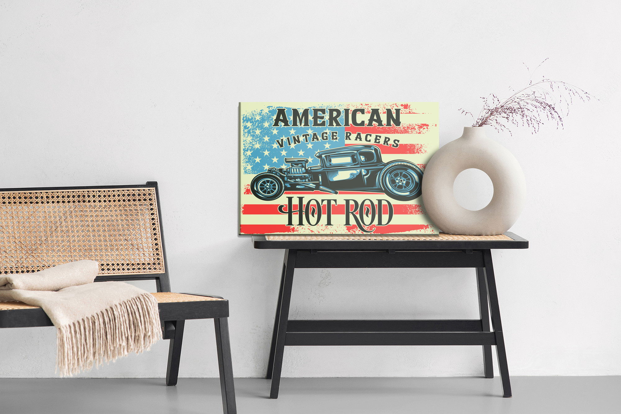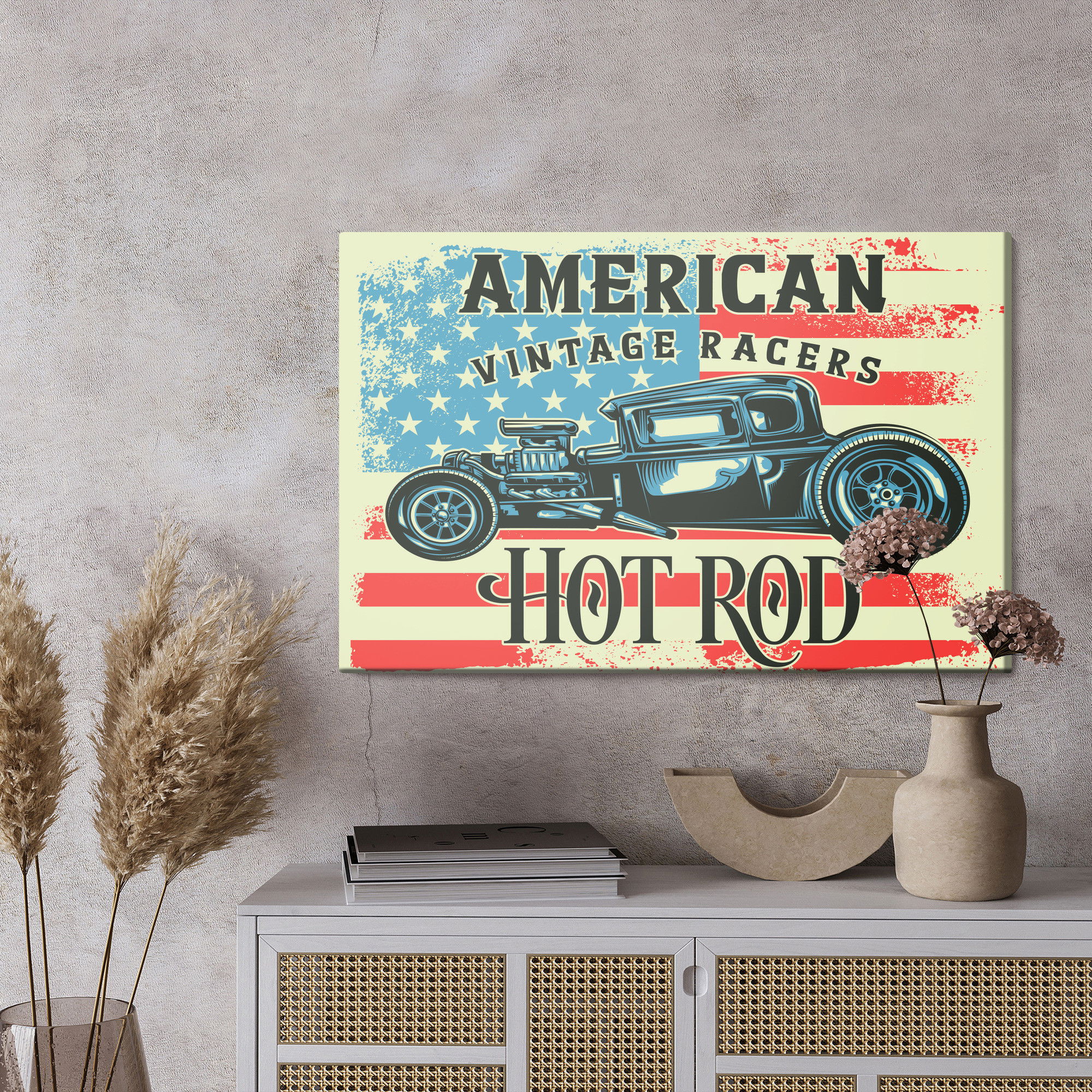 Varje tavla monteras på en massiv fururam. Format upp till 70×50 cm har en ram på 15 mm, medan format från 90×60 cm och uppåt har en ram på 20 mm. Den exakta dukspänningen gör att tavlan håller sin form över tid. Motivet Old car against trycks runt hela ramen vilket ger ett stilrent galleriuttryck där tavlan är lika vacker från sidan som framifrån. Kombinationen av rak dukspänning, rena linjer och korrekt tryck ger en professionell finish.