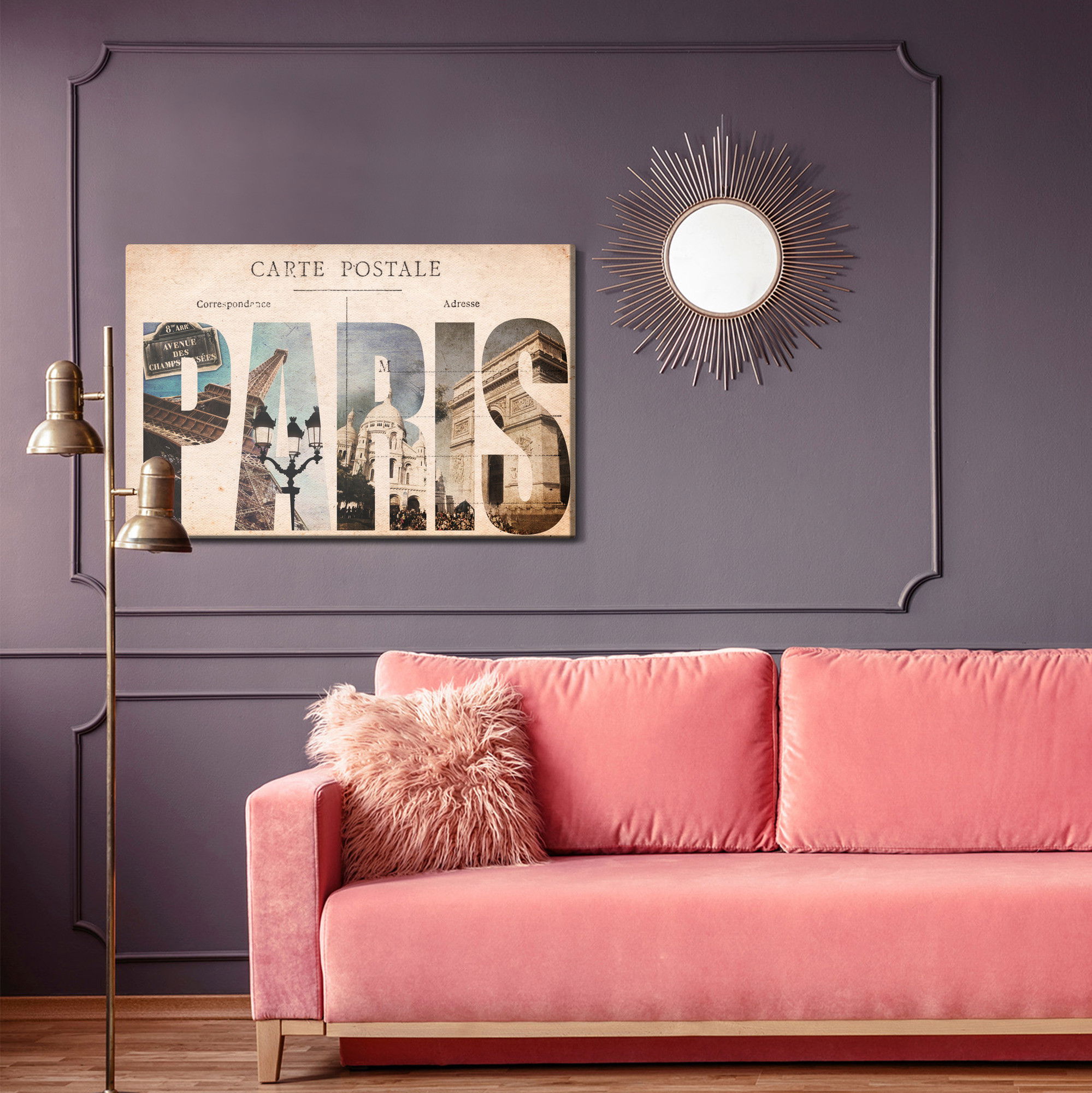 Ljuddämpande tavla – Paris vintage postcard för lugnare rum och mjukare akustik