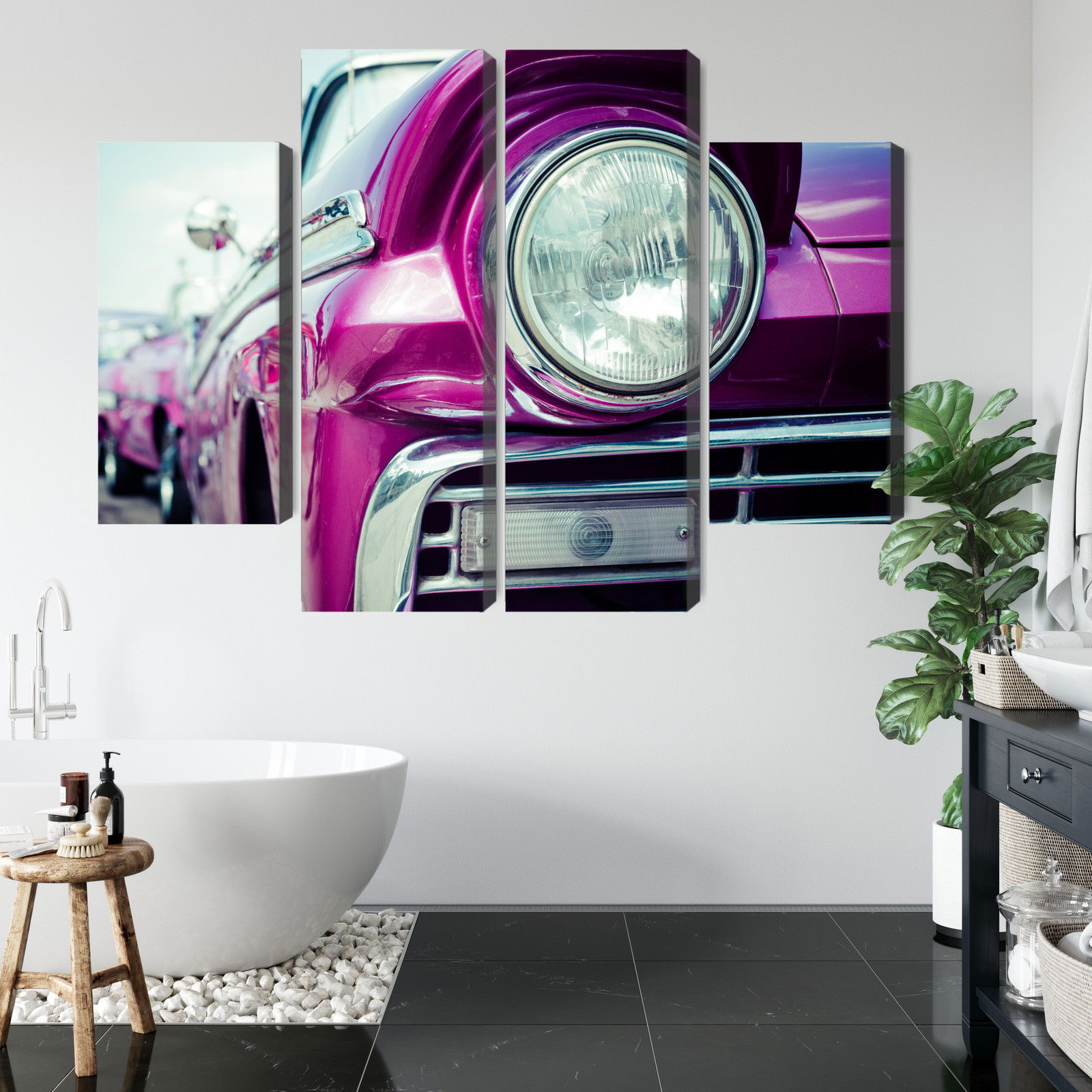 Motivet Retro style car headlight återges med hög färgprecision och detaljrikedom tack vare HP Latex-teknologi. Trycket sker med vattenbaserade, luktfria och GREENGUARD Gold-certifierade bläck som ger en upplösning på upp till 300 DPI. Färgerna är UV-beständiga och behåller sin styrka även i ljusa rum, vilket gör tavlan lämplig för både hem- och offentliga miljöer.