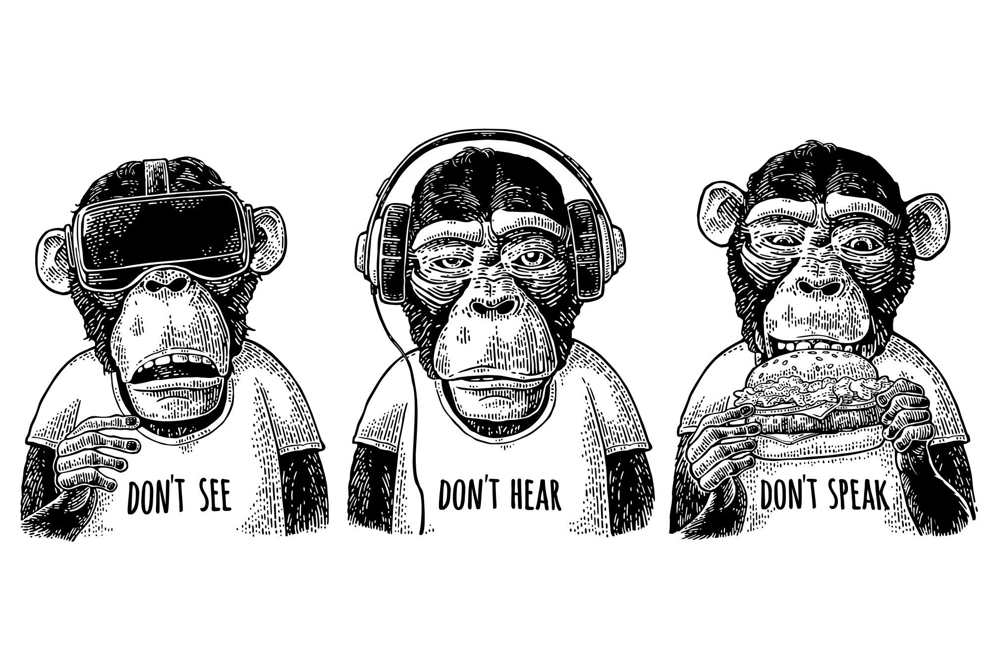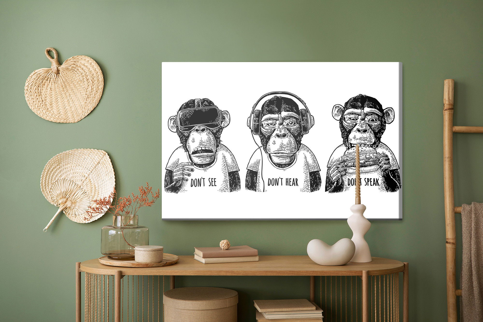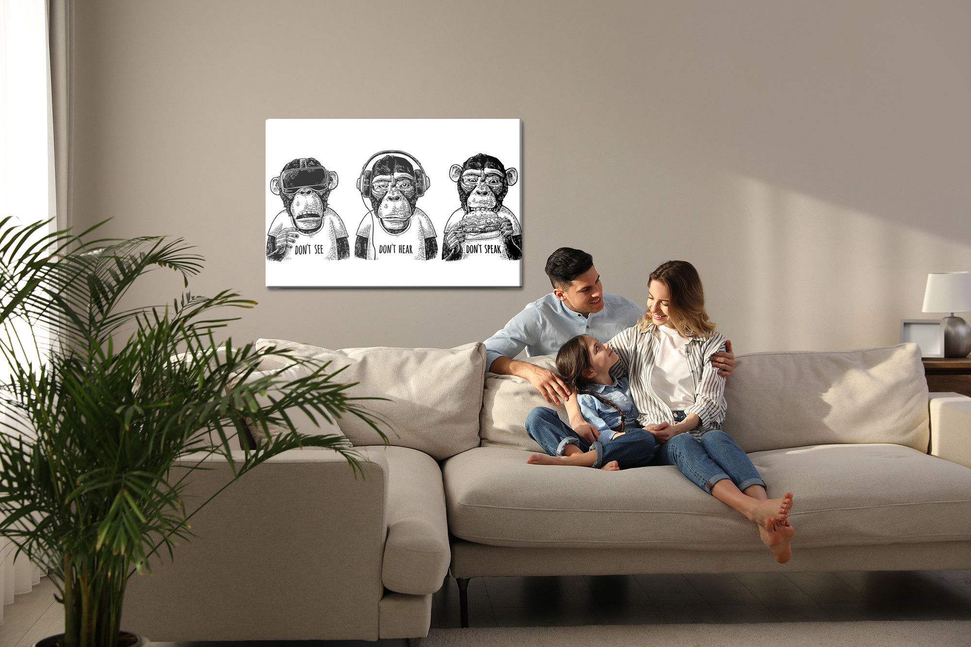 Ljuddämpande tavla – Three monkeys in vintage för lugnare rum och mjukare akustik