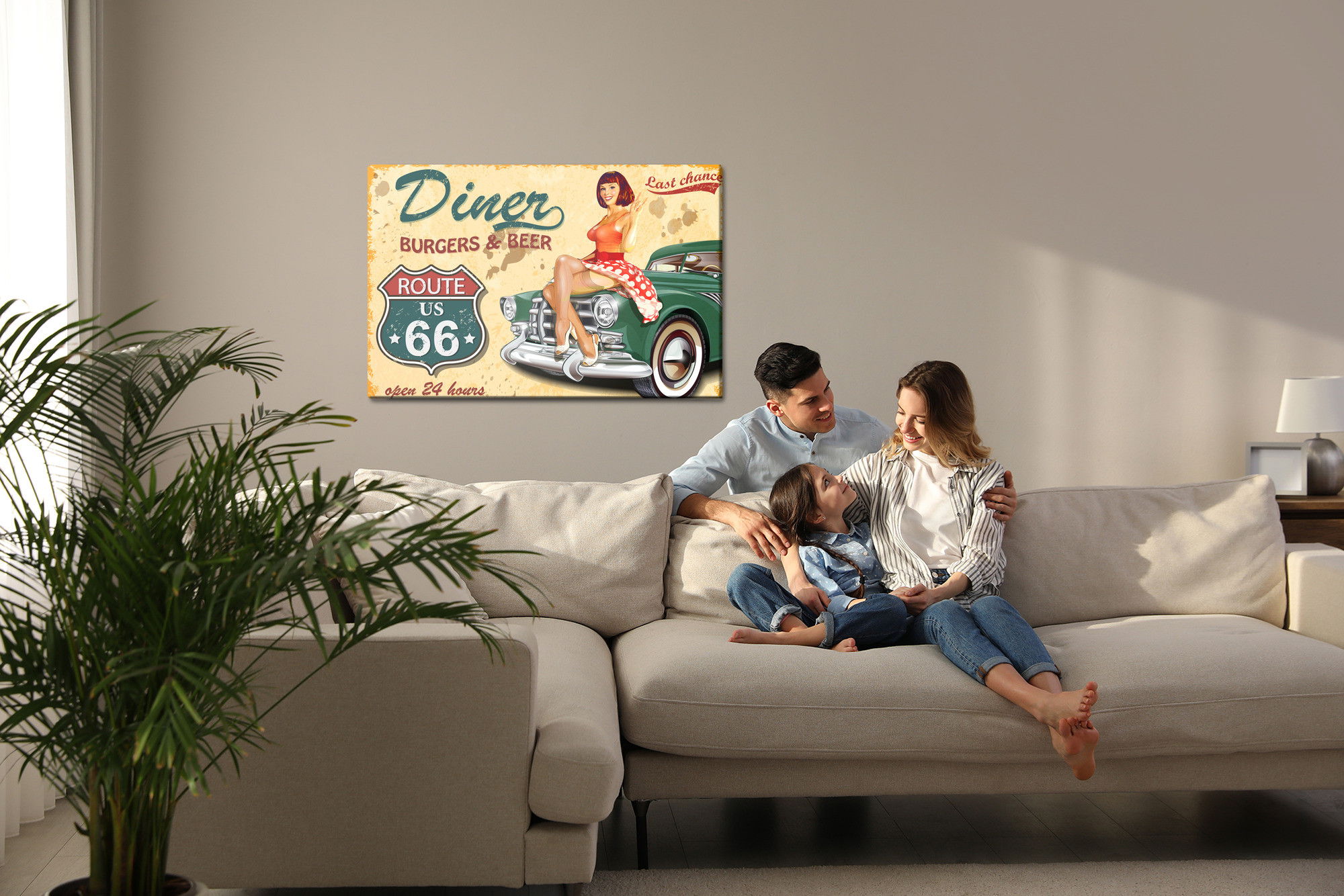 Varje tavla monteras på en massiv fururam. Format upp till 70×50 cm har en ram på 15 mm, medan format från 90×60 cm och uppåt har en ram på 20 mm. Den exakta dukspänningen gör att tavlan håller sin form över tid. Motivet Woman on the hood trycks runt hela ramen vilket ger ett stilrent galleriuttryck där tavlan är lika vacker från sidan som framifrån. Kombinationen av rak dukspänning, rena linjer och korrekt tryck ger en professionell finish.